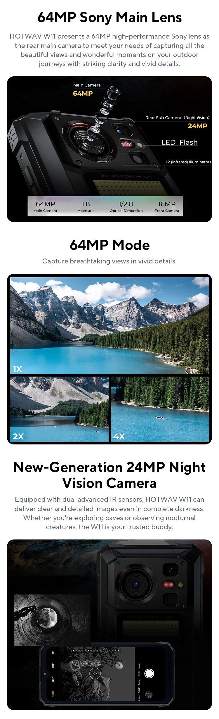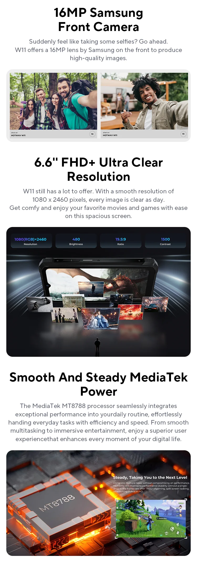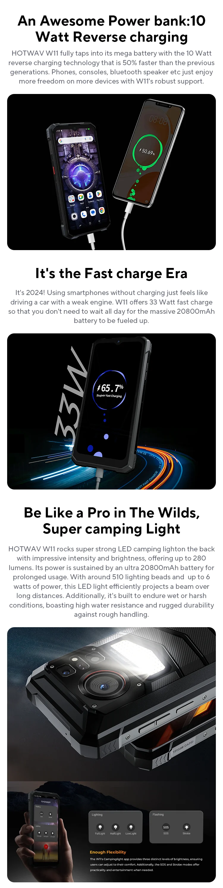 [World Premeire] HOTWAV W11 Rugged Phone 20800mAh 280LM Flashlight 6.6” FHD+ Smartphone 33W 24MP Night Vision Mobile Phone