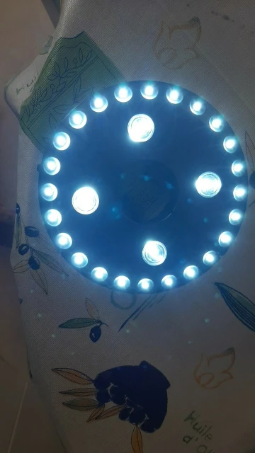 1、3 Lighting Modes: First press the middle with 4LED white light, second press the outer ring with 24LED light, third press with 24+4ED white light, the fourth press with power off.