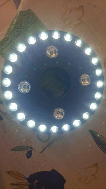 3 Lighting Modes: First press the middle with 4LED white light, second press the outer ring with 24LED light, third press with 24+4ED white light, the fourth press with power off.