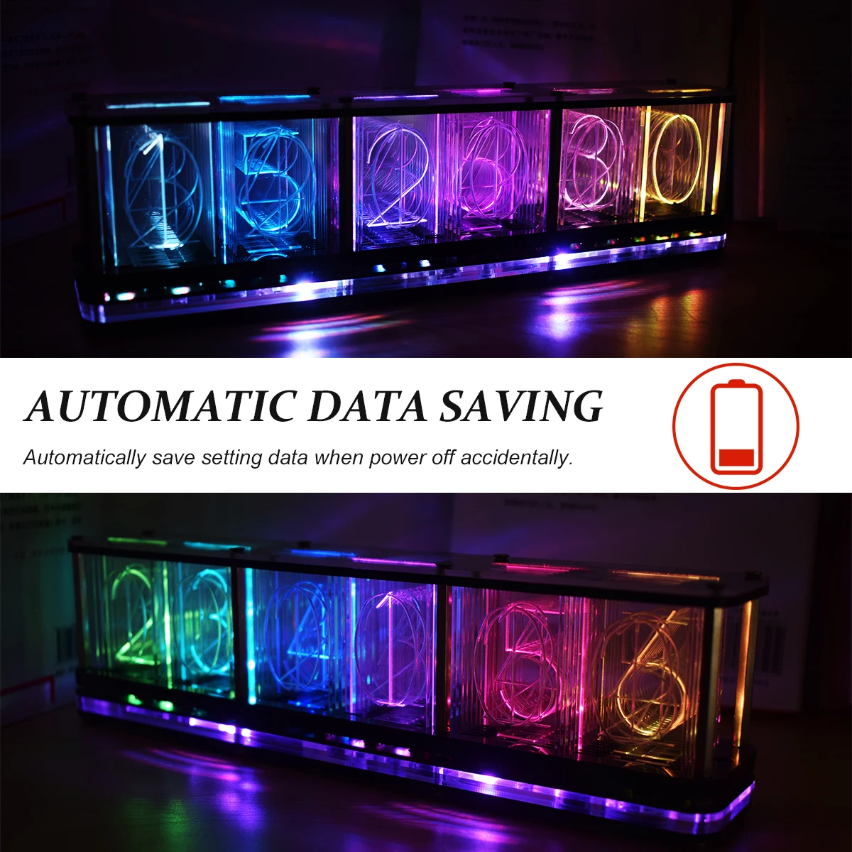 [Large LED Display] With highlight RGB color lights and 6-digit digital display, intuitively and clearly display time, temperature, date, week, etc..