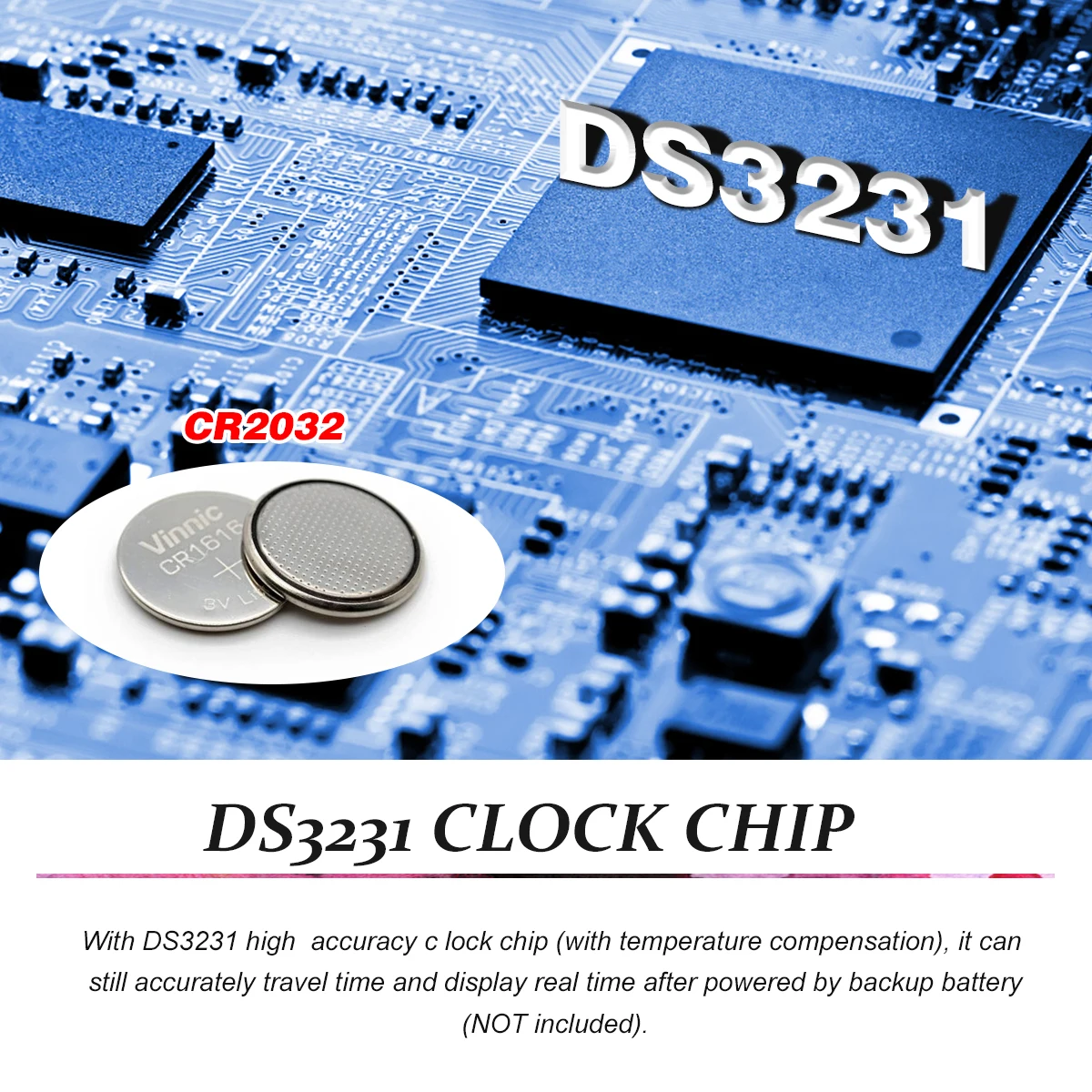 [DS3231 Clock Chip] With DS3231 high accuracy clock chip(with temperature compensation), it can still accurately travel time and display real time after powered by backup battery(NOT included).