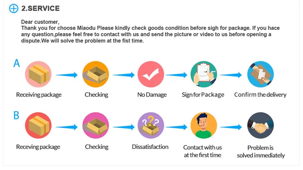 2. If any problems comes to you, please don't worry. You can contact us first. We promise we will try everything possible to help you.