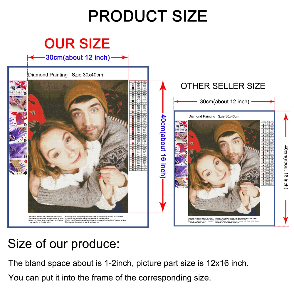1. This is DIY full drill diamond painting, not finished picture, need you finish it by yourself. As the lighting effects, the objects maybe a little different to pictures. Custom diamond painting is not included in the frame. It is just a rolled canvas.