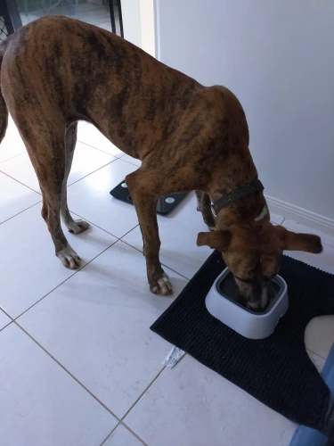 For my medium hight Flatcoated Retriever it seems okay, although it's a little smaller than the waterbowl I had before it works better without the amount of water splashing