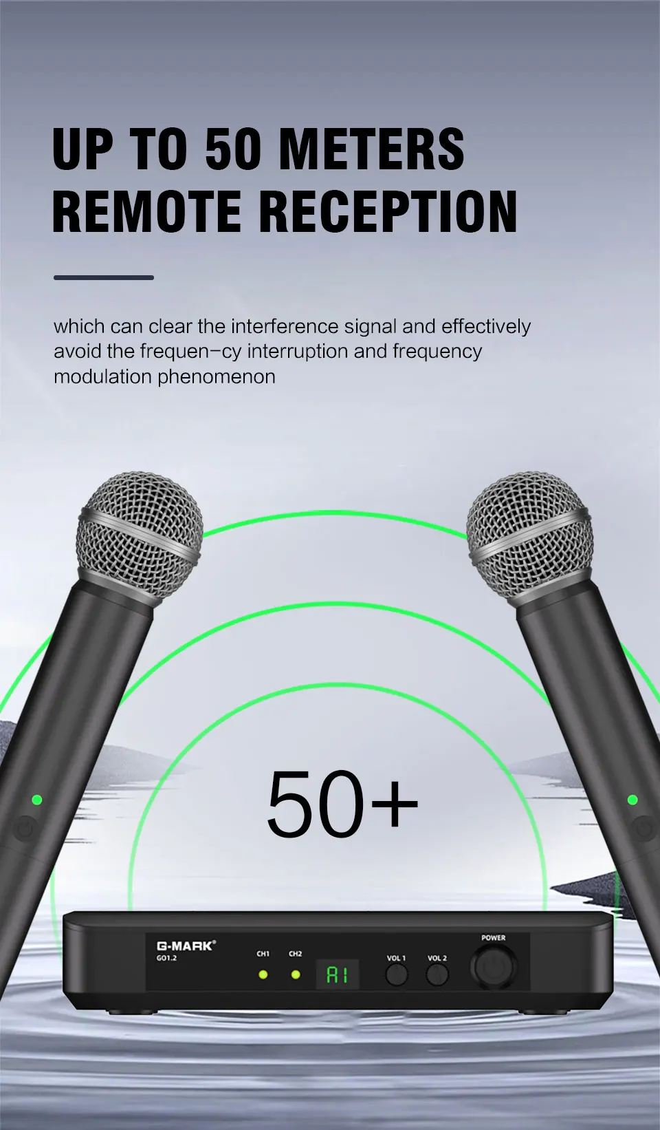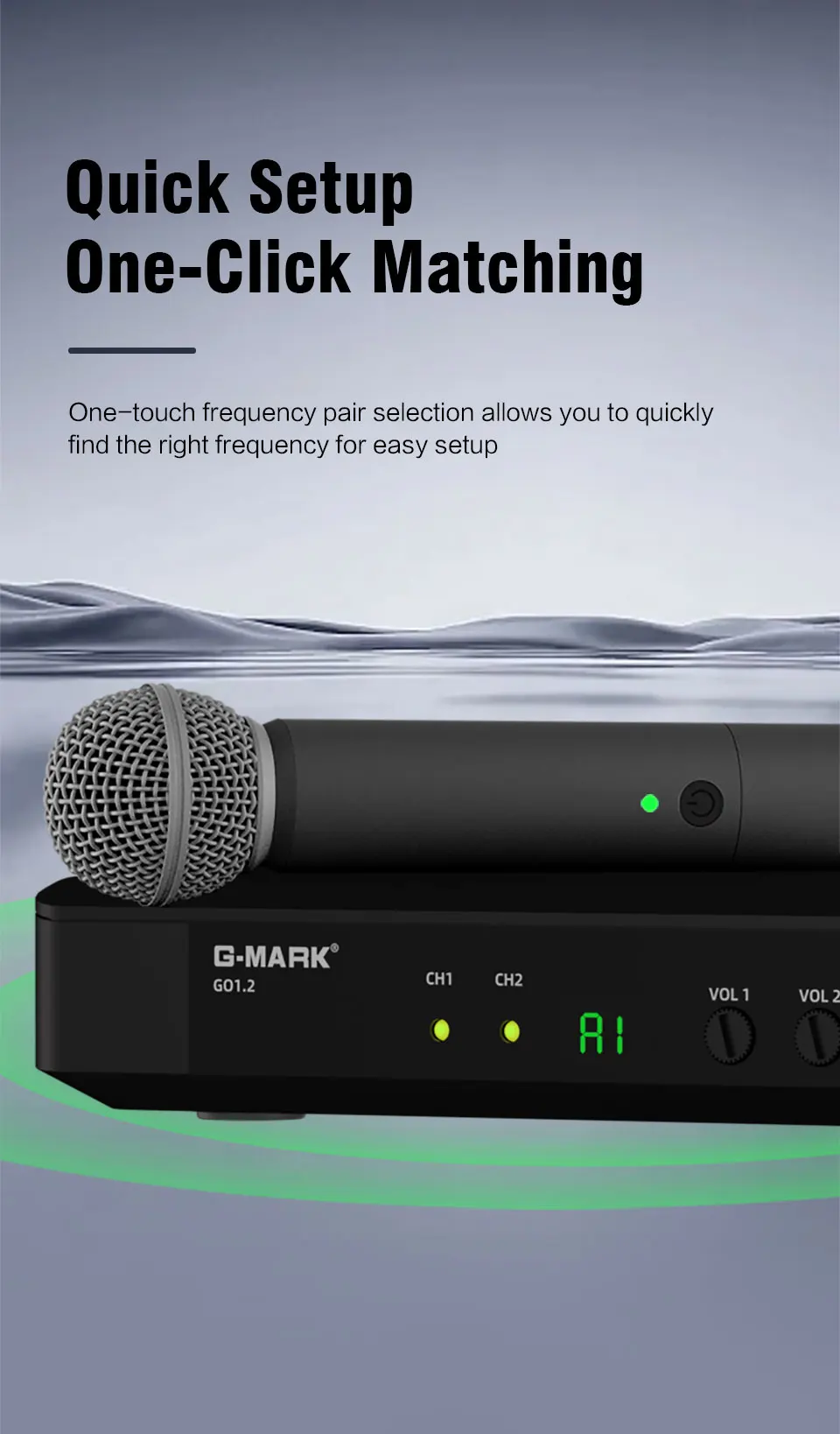 - Enhance your sound experience with the G-MARK GO1.2 UHF Wireless Microphone, a versatile and professional UHF microphone designed for clear, stable audio transmission. Whether you’re hosting a party, teaching a class, or delivering a speech, this handheld UHF wireless microphone provides the perfect solution for all your audio needs.