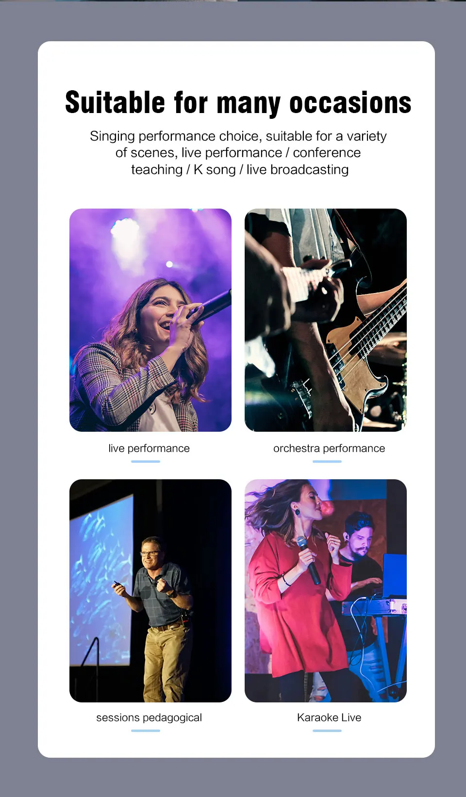 Whether you’re a singer, teacher, speaker, or host, the GO1.2 is designed to deliver outstanding sound in any setting. It excels in a wide range of environments, including karaoke parties, weddings, teaching sessions, church services, and corporate events. This versatility makes it your go-to microphone for every performance. - Stylish and Colorful Design Options