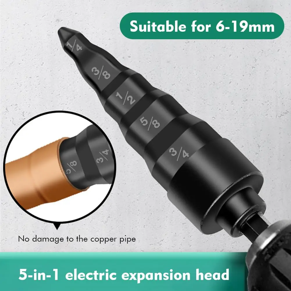 This versatile expander features five imperial sizes in one compact tool. The sizes include 1/4 inch, 3/8 inch, 1/2 inch, 5/8 inch, and 3/4 inch, making it compatible with a variety of copper tubing sizes. This 5-in-1 design eliminates the need for multiple tools and reduces the hassle of constant replacement.Compatible with Power Tools: