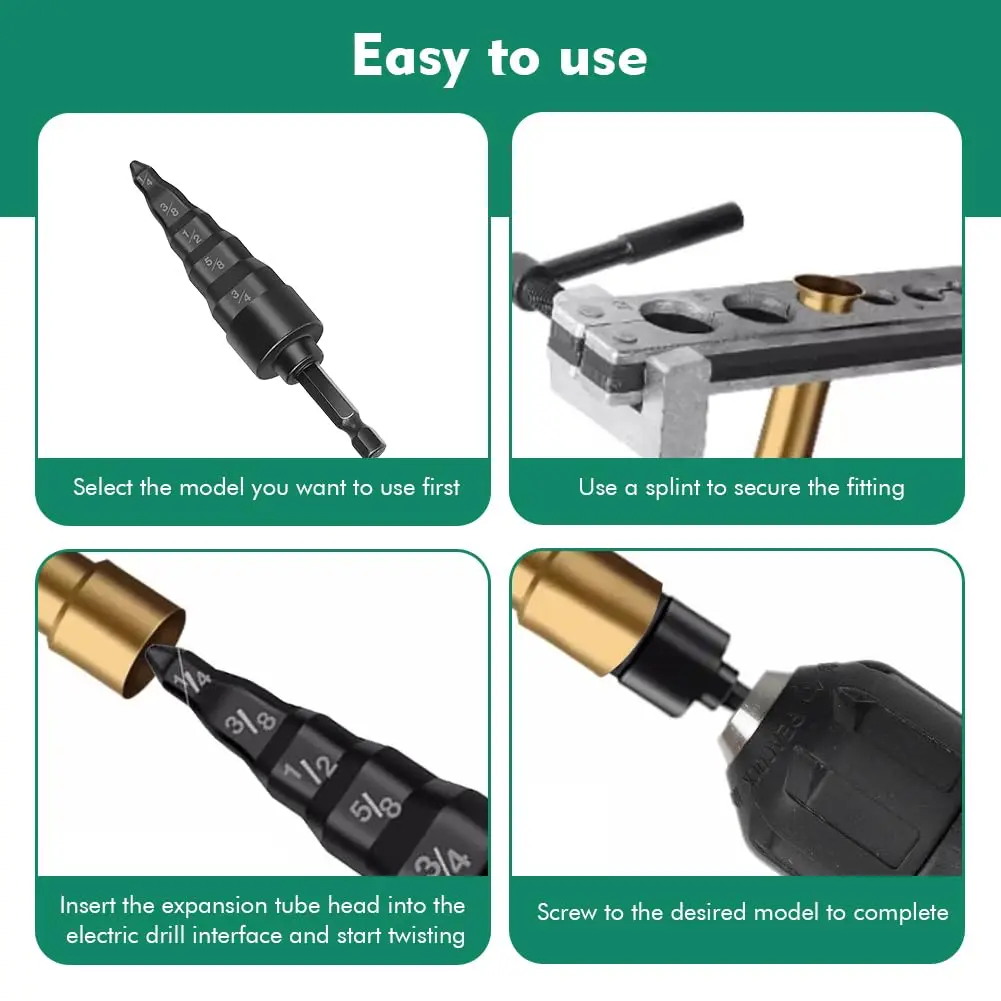 The SenNan Copper Tube Expander is designed to work seamlessly with electric drills, offering a more efficient and convenient method for expanding copper tubes. Whether you are conducting HVAC maintenance, refrigerator repairs, or working with copper or swage pipes, this tool makes the job faster and easier.Easy to Use:
