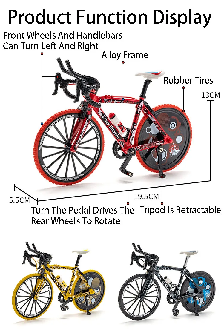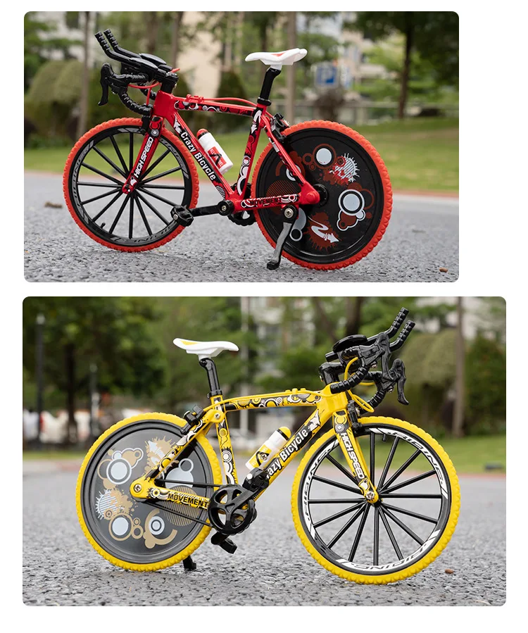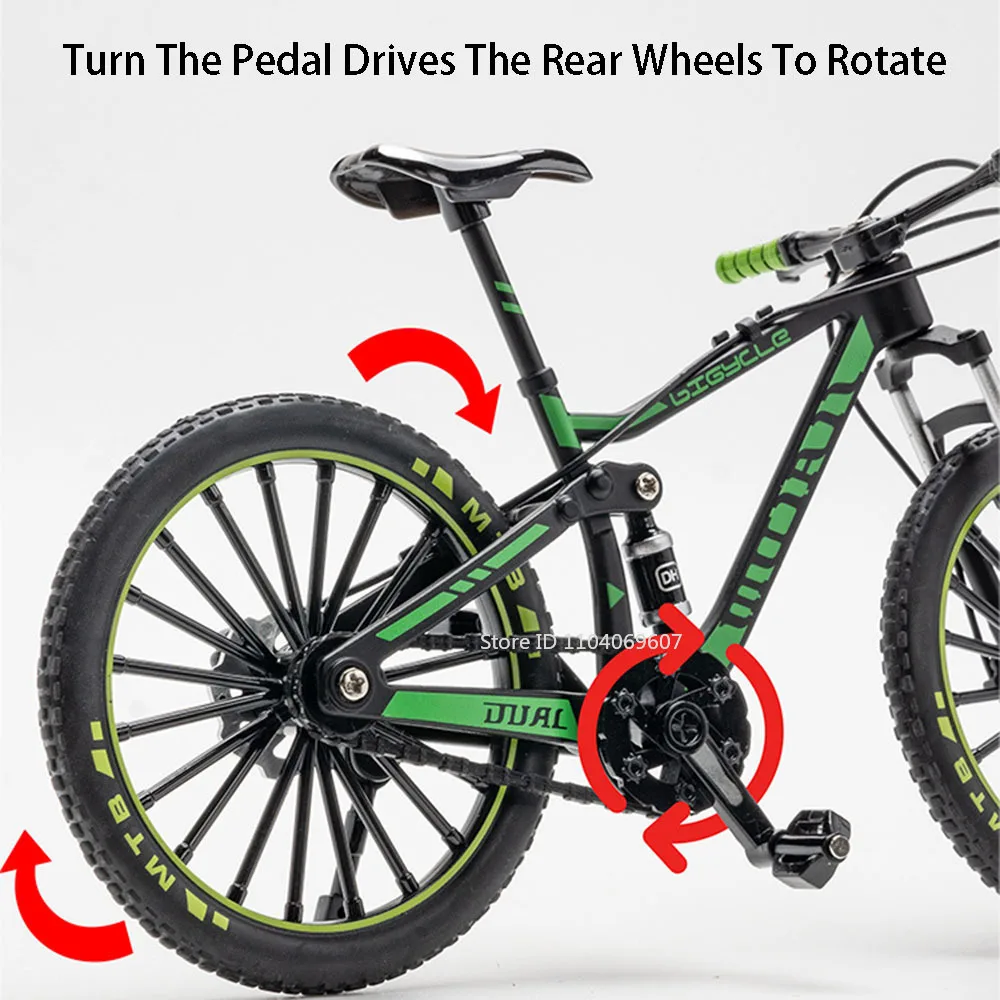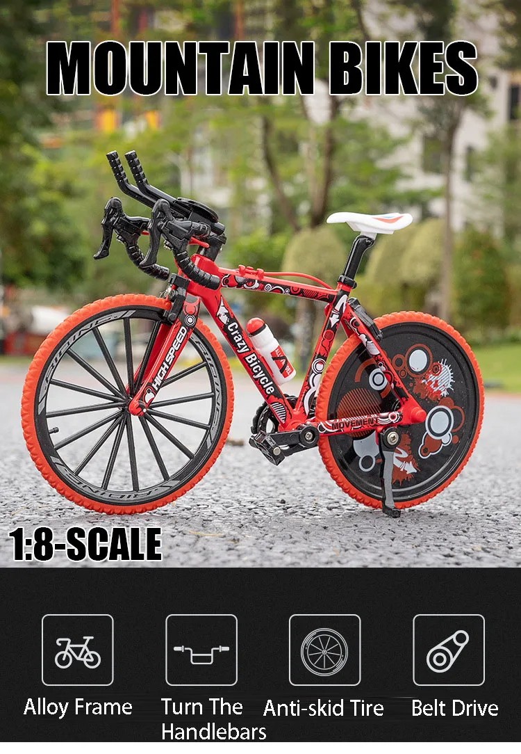 This 1:8 scale off-road mountain bike model is a perfect addition to any collection or a fantastic gift for children. The toy features high-quality materials and impressive attention to detail, making it a true replica of a real mountain bike. Crafted from a combination of metal body, plastic chassis, and rubber tires, this miniature bike is built to last and withstand the rigors of play.