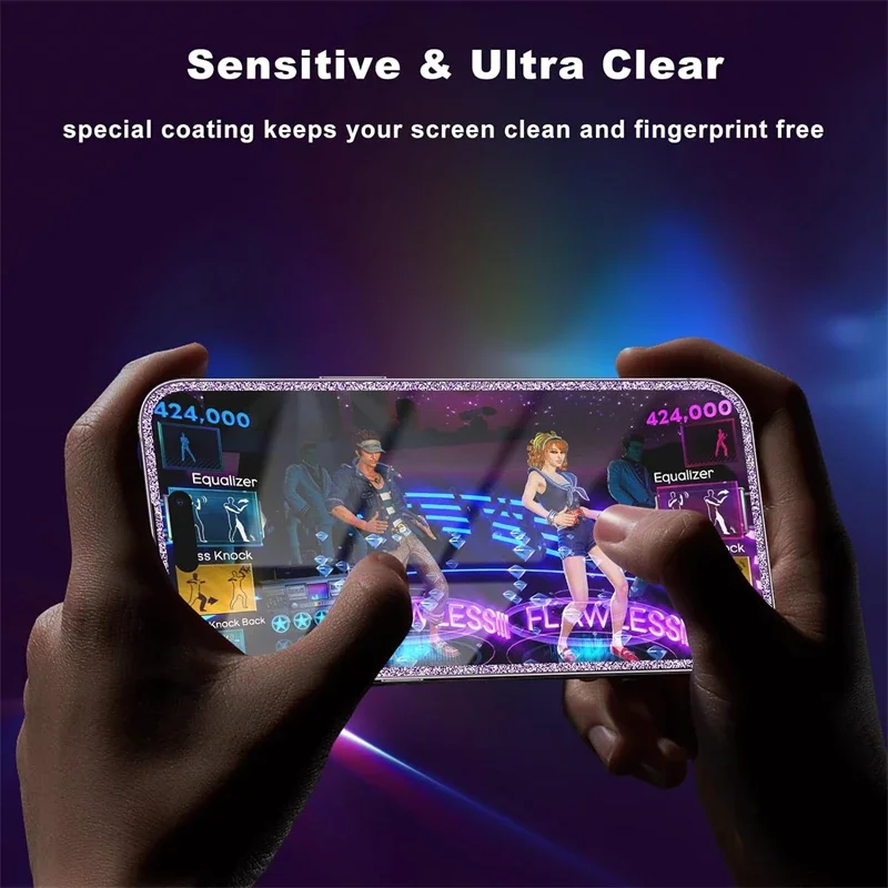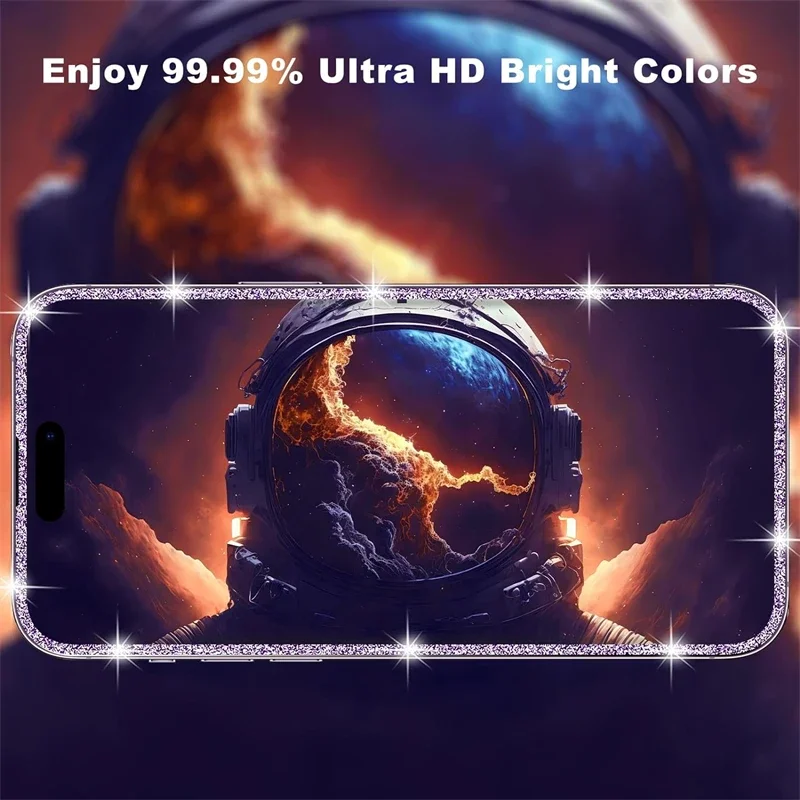 Crafted from high-quality tempered glass, the protector is designed to guard your screen against scratches, smudges, and drops. It provides ultimate protection from everyday wear and tear while preserving the clarity of your phone’s display. The blended glitter edge offers a trendy, eye-catching look, adding a touch of elegance and sparkle to your device.